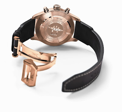 IWC Aviador Cronógrafo Edição Antoine de Saint Exupéry. Sexta homenagem ao piloto e poeta francês Antoine de Saint-Exupéry sob a forma de um Relógio Aviador Cronógrafo. Calibre automático com flyback. Caixa de 43 mm, em ouro rosa. Vidro de safira na frente e no verso. Estanque até 6o metros. Edição limitada a 500 exemplares.