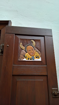 Um tronco de madeira, a matéria-prima tradicional dos relógios de cuso, e uma frase em alemão, de Mark Twain, dão as boas-vindas aos visitantes.